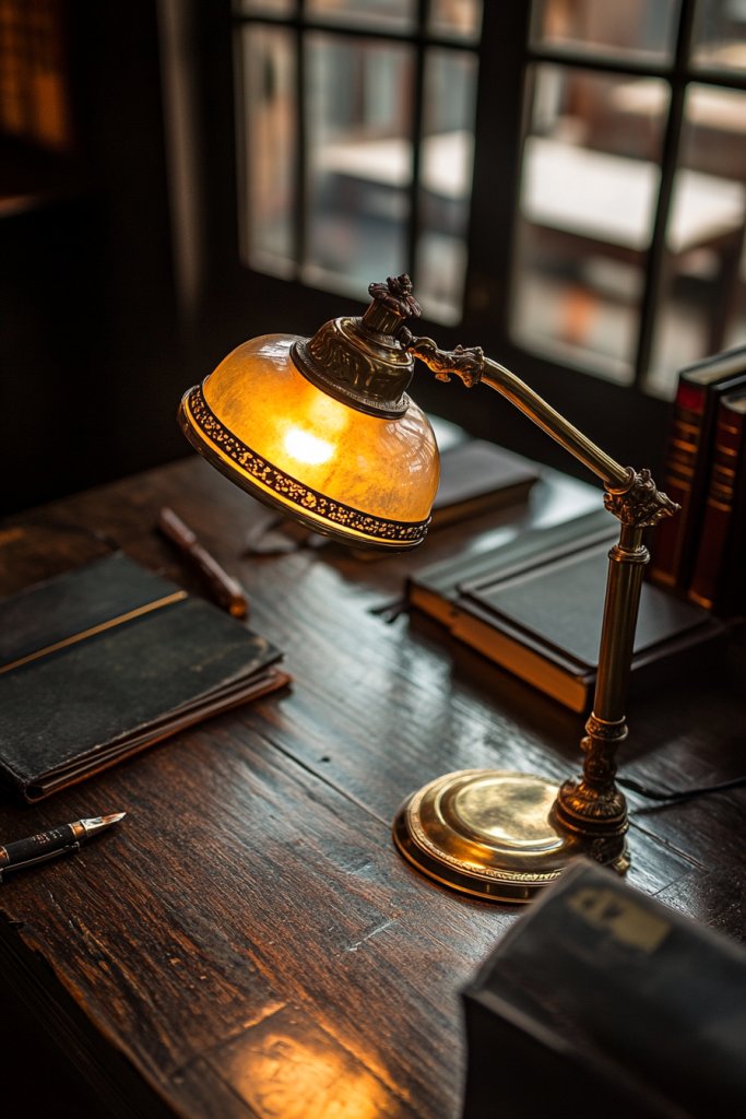 Struggling with insufficient lighting that kills the mood? A classic desk lamp with brass or antique finishes instantly adds warm, inviting illumination. It’s both functional and decorative, creating a cozy glow perfect for late-night study sessions or reflective evenings. Plus, it complements your vintage or dark academia aesthetic.