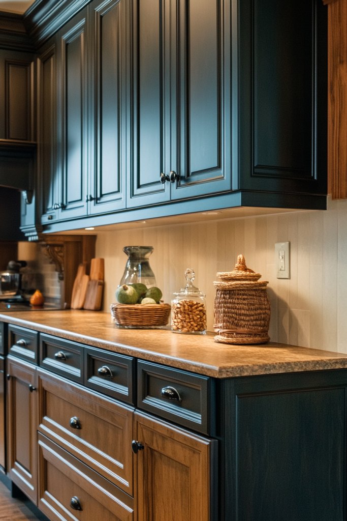 11. Two-Tone Dark and Earthy Cabinets for Rustic Contemporary Style
