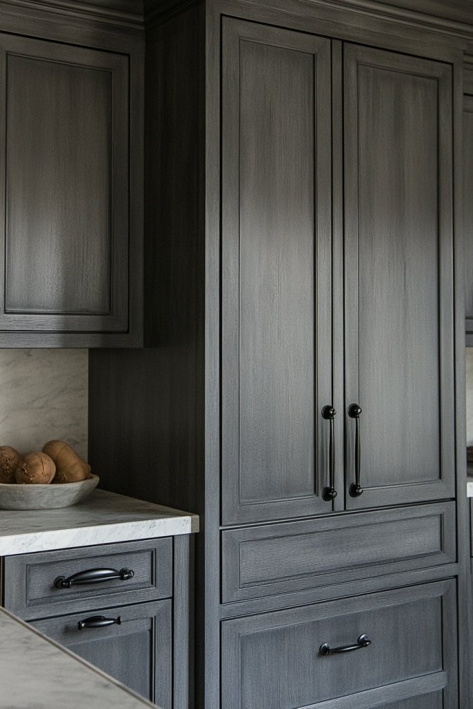 3. Charcoal Gray Cabinets with Textured Finishes for Visual Depth