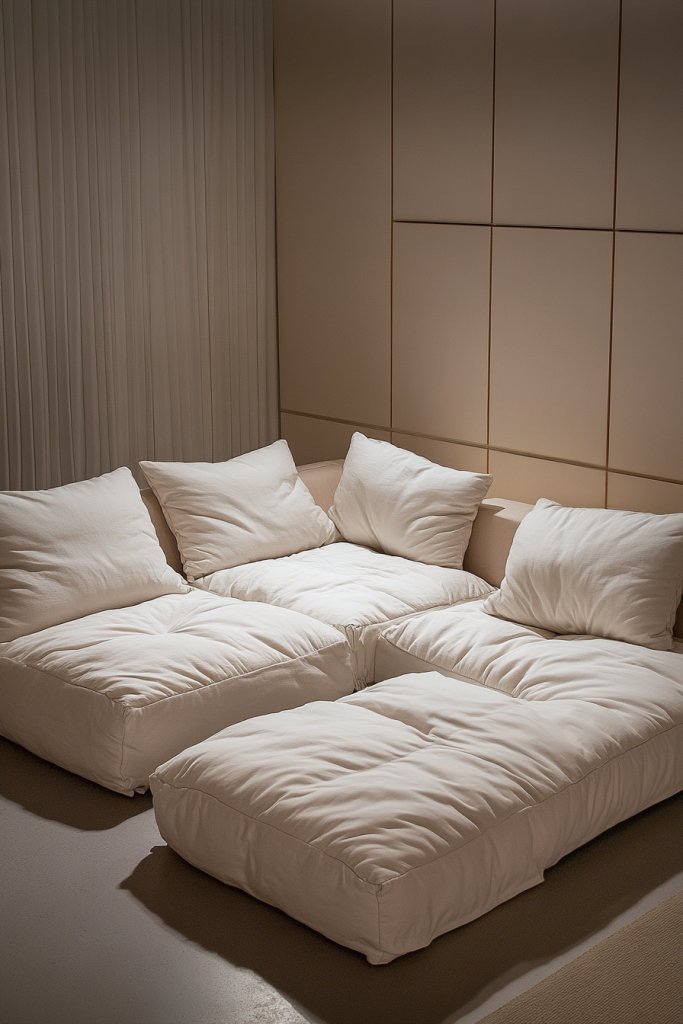Choose neutral or bold fabrics depending on your style. Add decorative cushions or throws to each section for personalized comfort. For different seasons, swap out textiles to match your mood—warm wool in winter or crisp linen in summer. This setup is ideal for open-plan living areas, small apartments, or multi-purpose rooms.