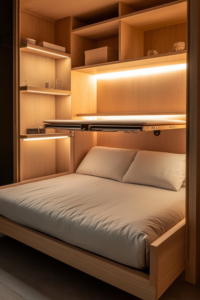 Imagine a wall panel that seamlessly blends into your decor, with a hidden latch or handle. When folded down, a plush mattress appears, dressed with inviting linens and decorative pillows. When folded up, the bed disappears into the wall, revealing artwork or a decorative panel. This clever design keeps your room versatile and clutter-free.