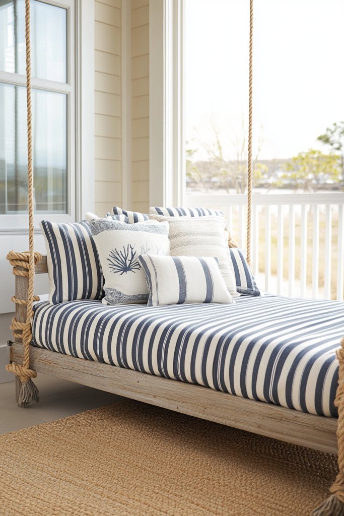 13. Coastal Style Day Bed with Nautical Stripes and Rope Details