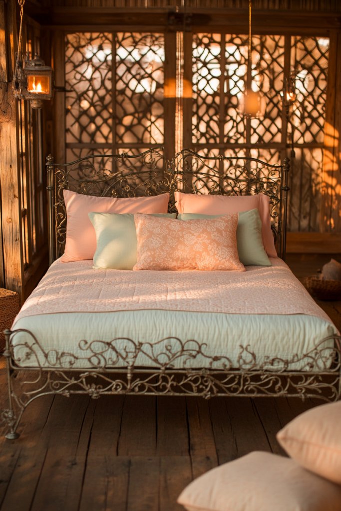 6. Vintage-inspired Iron Day Bed with Soft Pastel Bedding