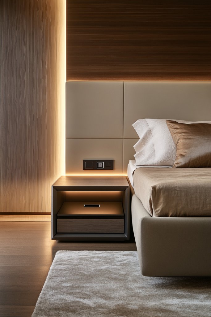 Personalize with custom pillow covers, or add a small, decorative tray on the nightstand for your nightly essentials. Incorporate smart home features like voice-controlled lights or speakers if you want to go high-tech. Keep the look clean with minimal decor, or add a textured throw for warmth. The goal is a blend of sleek design and everyday practicality.