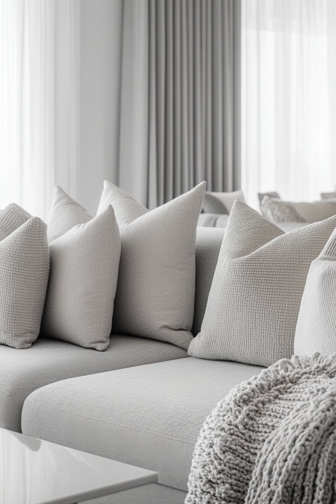 Layer different textures—think a waffle weave duvet or a plush throw—while keeping the color palette monochrome. Seasonal updates can involve swapping out lighter fabrics for warmer textures in winter. For a cozy feel, add a chunky knit blanket or wool pillows without breaking the neutral scheme. Adjust layering based on your sleep preferences.
