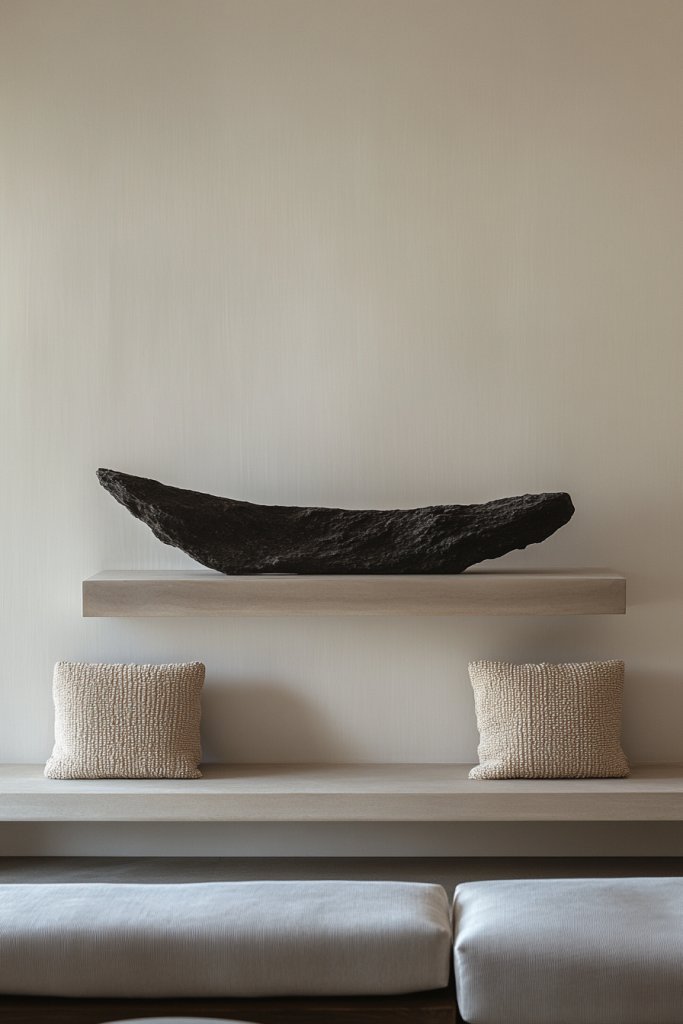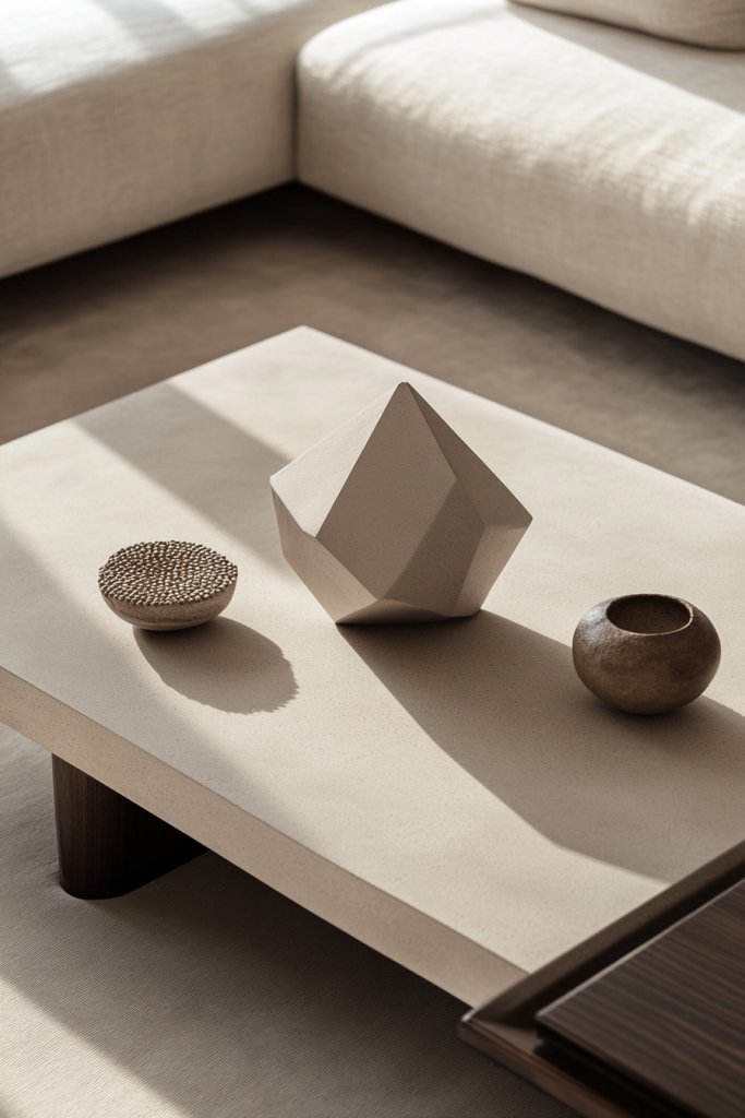 Visualize a set of sleek, geometric sculptures on a shelf or a bold abstract print in neutral tones on the wall. The clean lines and shapes contrast beautifully with simple backgrounds. The shapes guide the eye and create a sense of movement and rhythm in the space. This minimalist art adds depth and character without overwhelming.