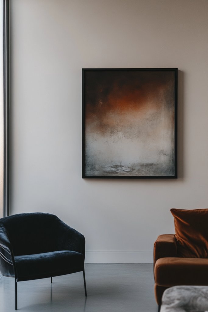 Imagine a single black-and-white photograph in a slim matte frame hanging above a neutral-colored sofa. The clean lines of the frame draw attention to the art itself, creating a focal point. The simplicity of the presentation enhances the artwork’s impact while maintaining an uncluttered look. This approach transforms your wall into a curated gallery that feels effortless.