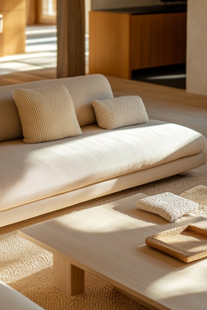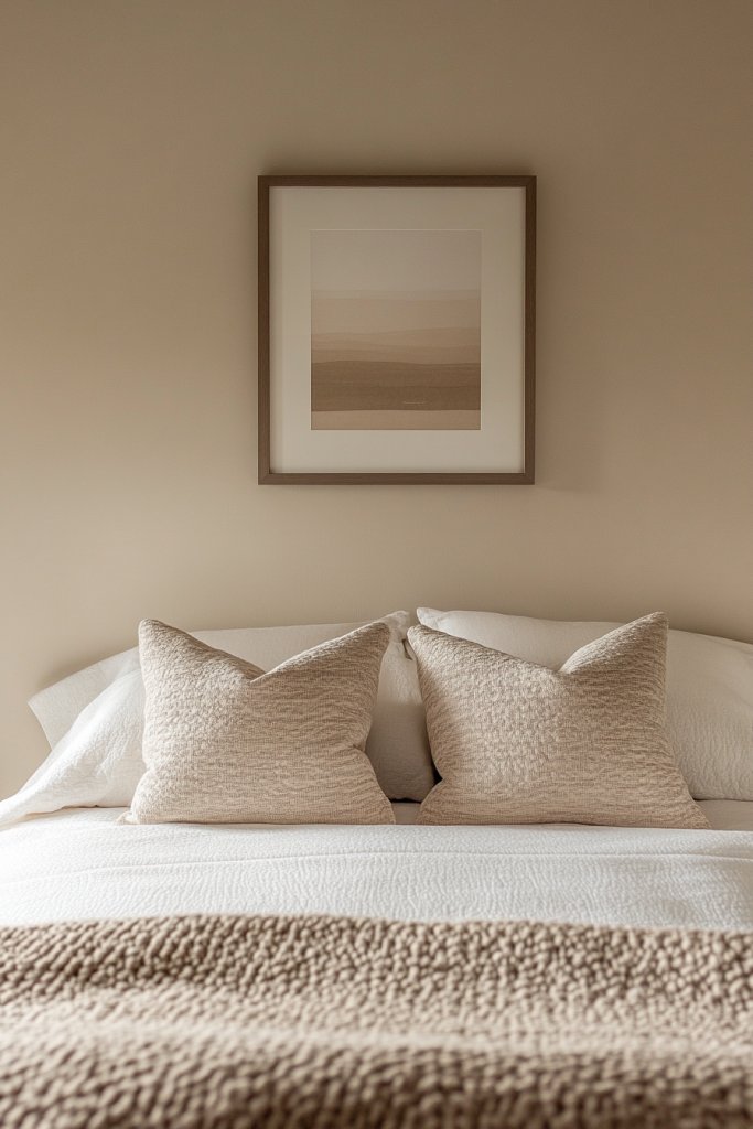 Imagine a room painted in soft shades of beige, with textured fabrics like a chunky knit throw and woven rugs adding depth. The smooth matte walls contrast beautifully with sleek furniture lines, creating a balanced, tranquil vibe. Natural light bounces gently off neutral surfaces, enhancing the serene atmosphere. It’s a space that invites you to relax and breathe.