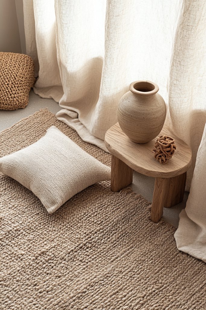 Mix different natural textures—like a wool throw with a rattan basket or linen curtains with a wooden frame—for a layered look. Use raw or unfinished finishes for a rustic touch, or smooth, polished surfaces for a modern edge. Adapt the scale of textures based on room size—larger textiles for bigger spaces, smaller accents for compact rooms. Seasonal swaps keep the look fresh.