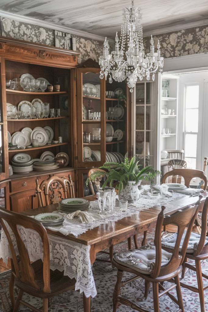 Consider displaying a collection of antique dishware on an open shelf, where their delicate patterns catch the eye and spark nostalgia. A weathered farmhouse table can serve as the heart of your dining space, inviting laughter and shared meals.