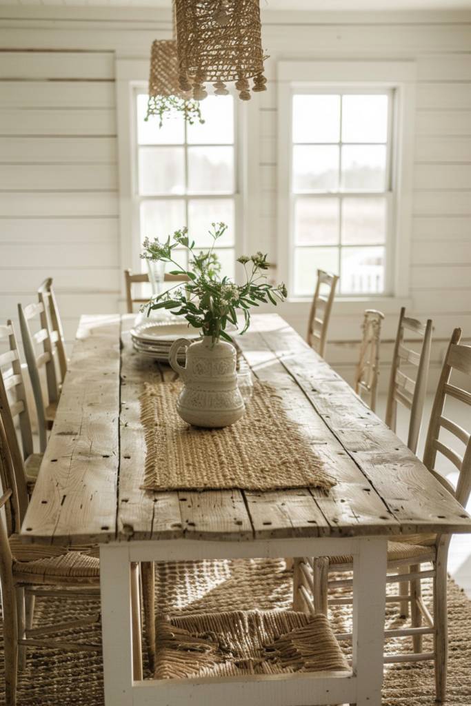 Incorporate soft textiles like a woven table runner or linen napkins to add layers of comfort. Think about incorporating vintage accents, such as a weathered hutch or antique light fixtures, which can serve as conversation starters.