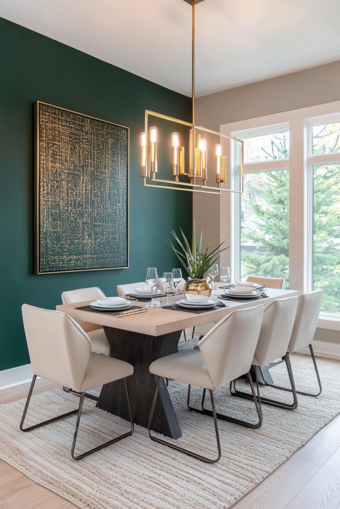 Whether you choose a bold paint, intricate wallpaper, or even reclaimed wood, an accent wall adds depth and personality to your dining experience. Think about colors that resonate with your style—deep navy for sophistication or a vibrant yellow for cheer.