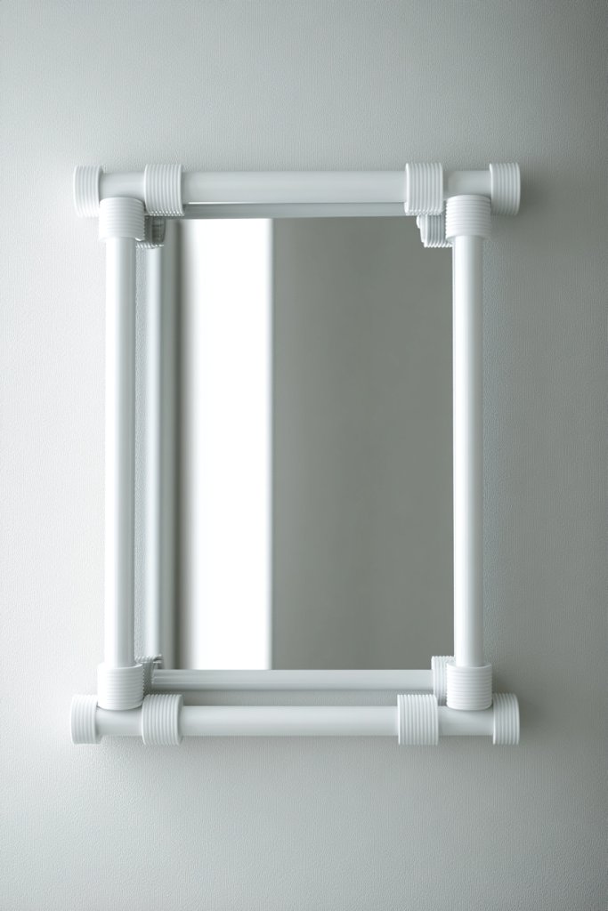 Purchase PVC pipes and connectors from hardware stores, choosing the color and size you prefer. Cut pipes to length with a hacksaw or pipe cutter. Assemble the frame by connecting the pipes with appropriate fittings, ensuring tight joints. Use strong adhesive or screws for extra stability. Attach the assembled frame around your mirror with adhesive or mounting brackets.