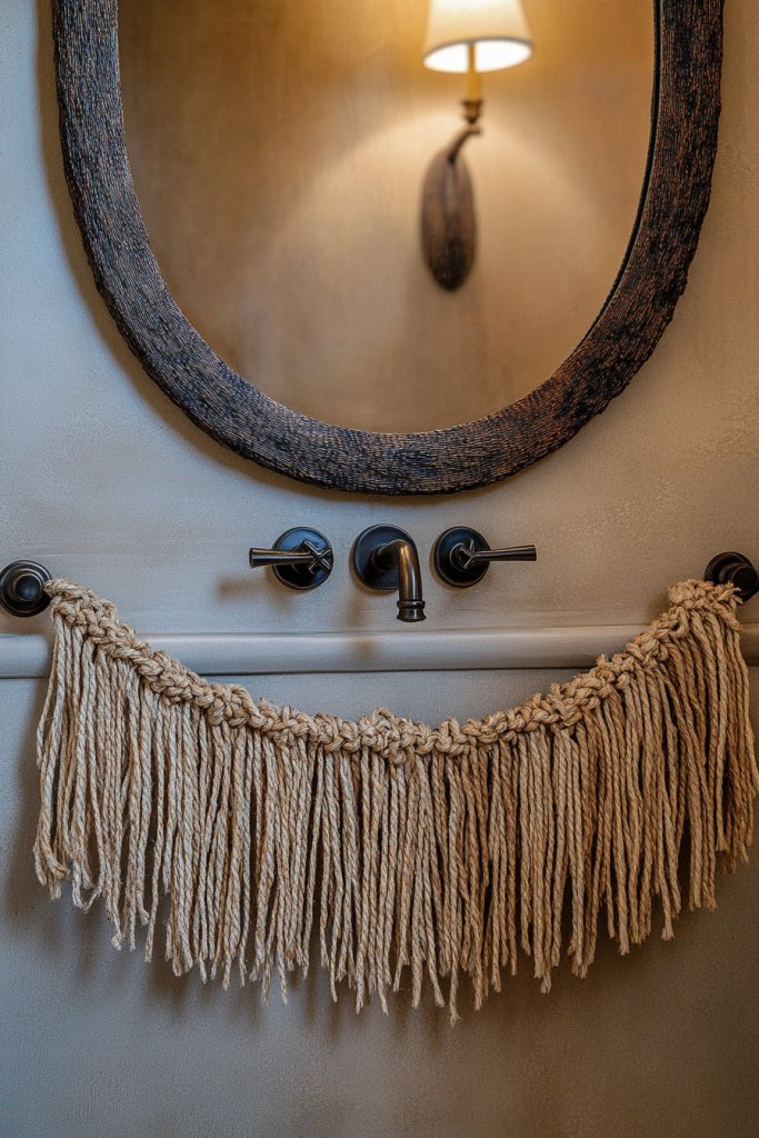 Searching for a boho or industrial touch to your mirror? Adding fringe made from rope or chain links can give your bathroom a textured, layered look. It’s a budget-friendly way to create visual interest and a bit of movement. Who says accents need to be complicated?