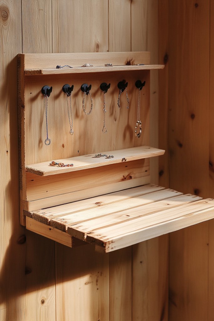 8. Design a Fold-Down Jewelry and Accessory Organizer from Wooden Pallets