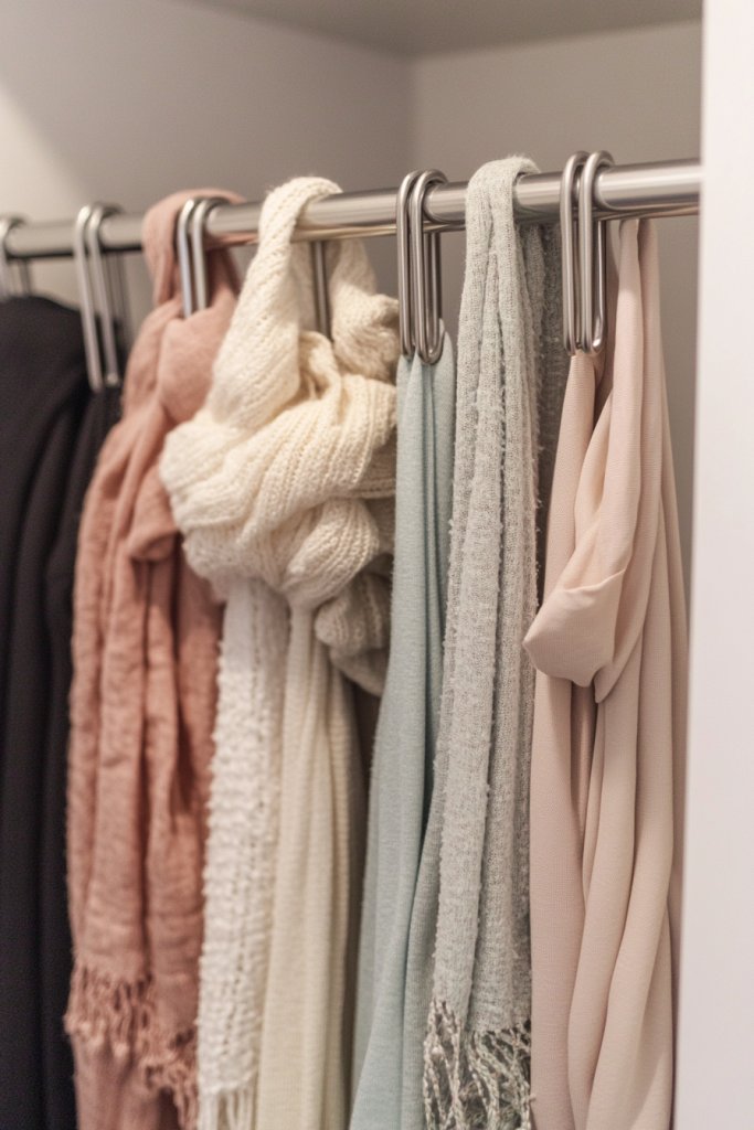 Hanging clothes in a single layer often leads to wrinkles and difficulty seeing options at a glance. Scarves and accessories tend to tangle or fall behind other items. Installing tension rods provides a simple way to add layered hanging space without permanent fixtures, making your closet more functional.