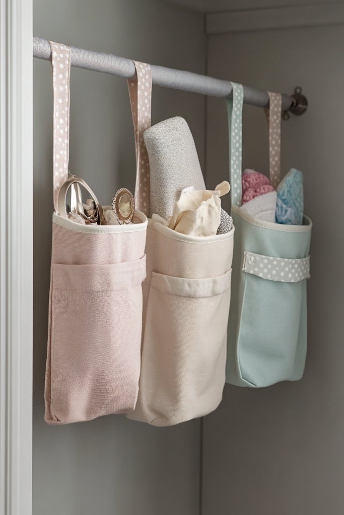 Choose fabrics that complement your space—think neutral linen for a minimalist look or patterned cotton for a boho vibe. Attach multiple pockets or layers depending on your storage needs. Use decorative trims or embellishments to add personality. Mount the rod at various heights or angles to adapt to your closet’s design.
