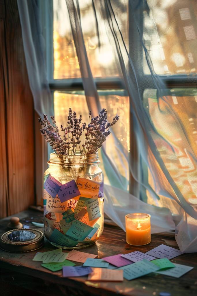 A memory jar can be a beautiful centerpiece that captures the essence of your most cherished moments. Imagine a glass jar brimming with colorful slips of paper, each one telling a story or holding a memory dear to you. Start by gathering small pieces of paper in various shades that resonate with your decor. Each time something special happens, jot down the details—whether it’s a vacation, a heartfelt conversation, or a simple moment of joy.