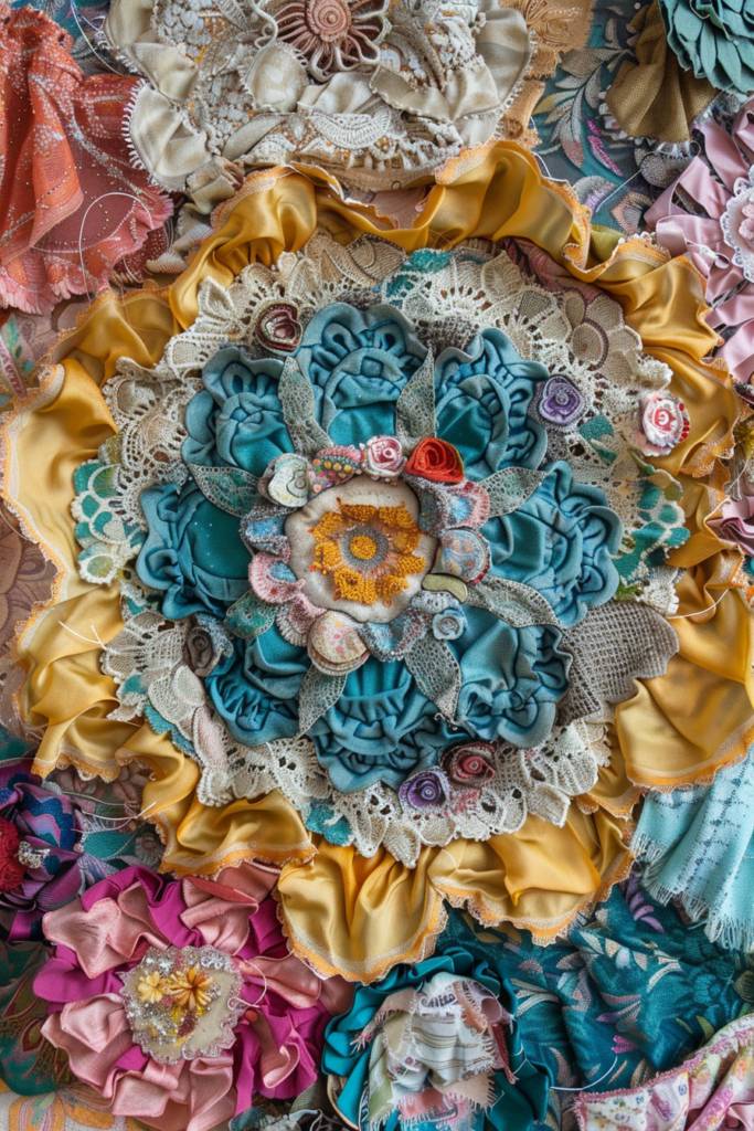 Next, arrange these pieces on a canvas or a wooden board, experimenting with placement until it feels just right. You can use fabric glue or a staple gun to secure them. For added dimension, layer fabrics or mix textures.