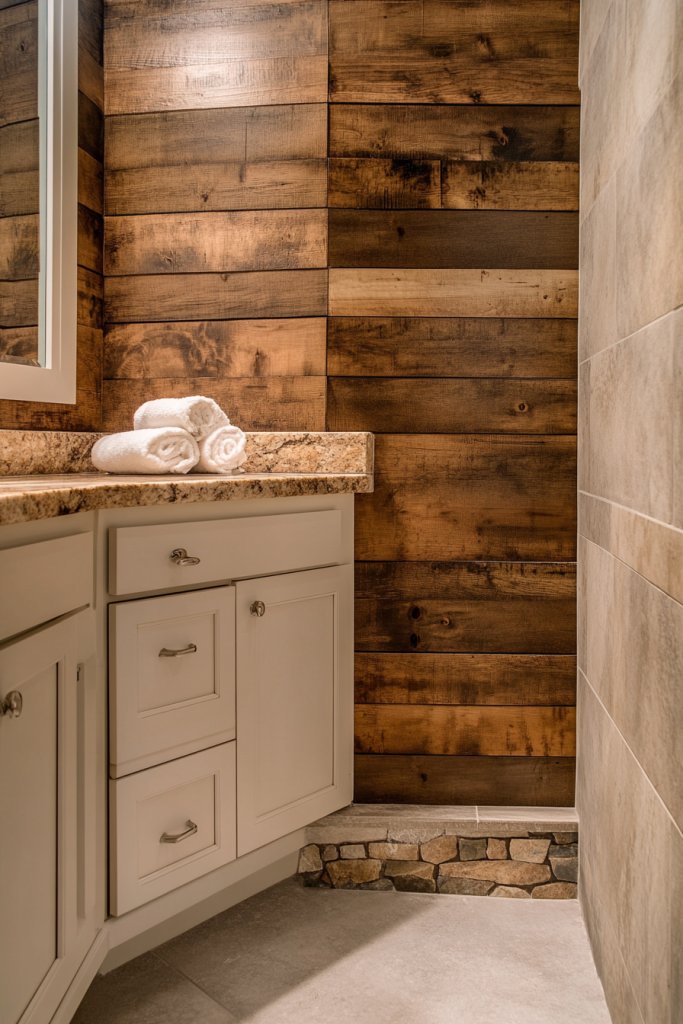 Your bathroom can feel cold and sterile without natural textures. Faux wood panels or stone-look tiles introduce warmth and texture, creating a spa-like atmosphere. Best of all, they’re low-maintenance and easy to install.