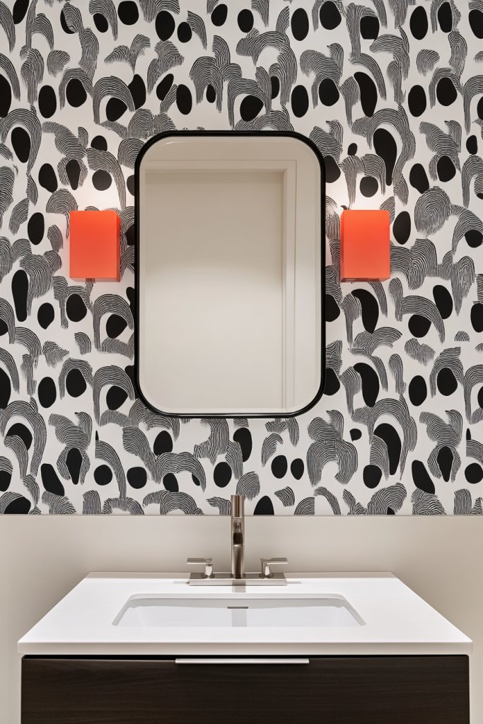 Bored of plain walls that do nothing for your bathroom’s personality? Bold, removable wallpaper offers a quick way to make a statement without the permanence of paint or traditional wallpaper. It’s perfect for renters or anyone who loves changing up their decor frequently.