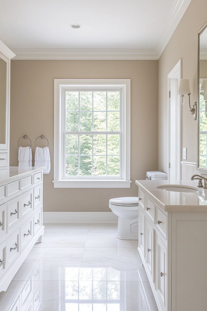 Bored with your bathroom’s dull, outdated wall color? A fresh coat of paint in calming neutrals can instantly lift the space and create a serene retreat. It’s one of the simplest ways to update your bathroom without a full renovation.