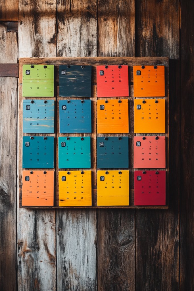 Want a calendar that’s both functional and full of personality? A multi-color barn wood calendar with painted monthly sections adds vibrancy and clarity to your planning. It’s a cheerful, eye-catching decor piece that motivates you every day.
