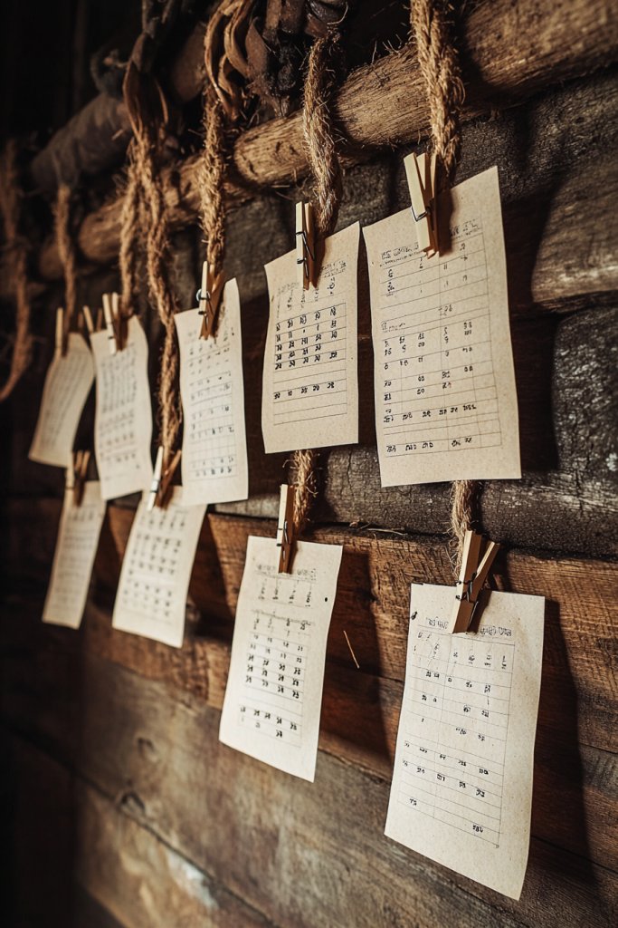 Do you struggle with rigid, unchangeable calendars that make updates a hassle? A barn wood backdrop with rope-hung paper sheets offers a flexible, rustic alternative. It’s easy to change, visually appealing, and adds a natural, handmade vibe to your planning space.