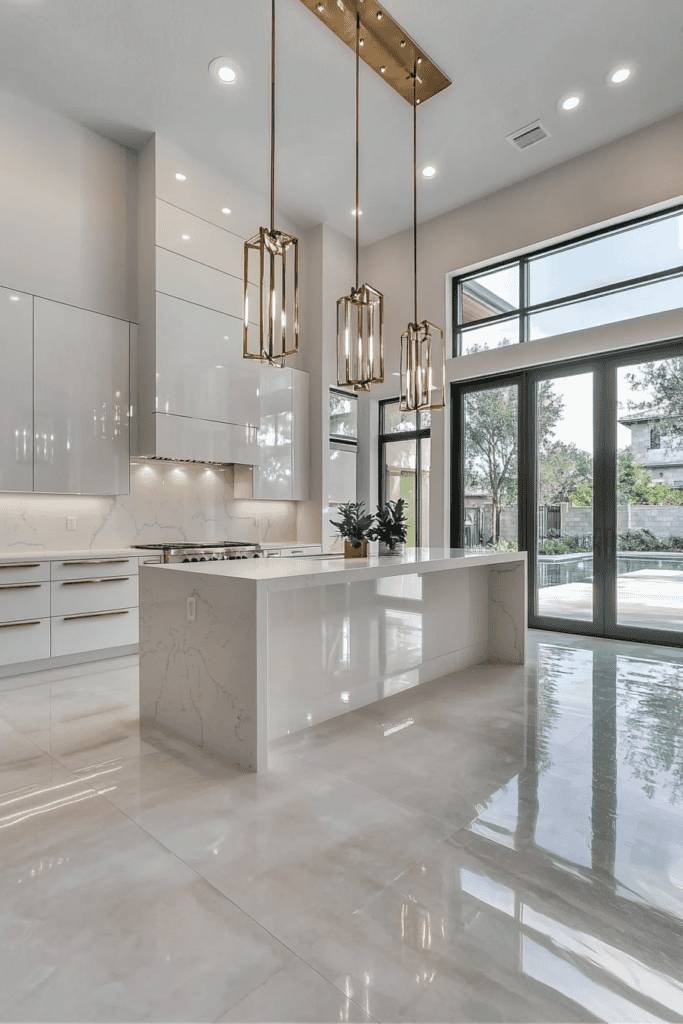 Consider incorporating open shelving to display beautiful dishware, allowing for both practicality and aesthetics. Soft lighting enhances the overall ambiance, providing a cozy glow without overwhelming the space.