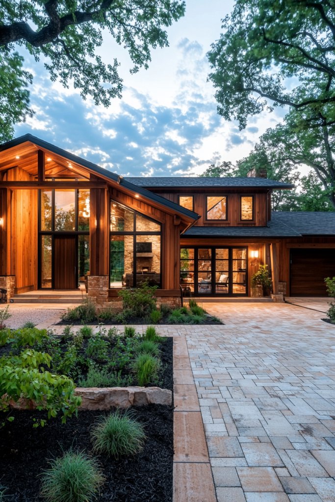 Warm wood elements set a beautiful foundation, but if you want to make a striking statement, bold paint colors can truly elevate your home’s exterior. Imagine a vibrant teal or a rich crimson that catches the eye and invites curiosity.