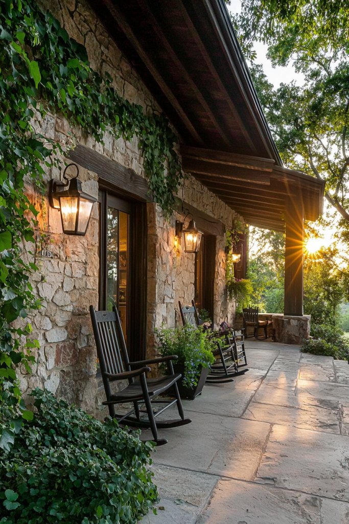 - Add rustic stone accents to create an elegant and inviting facade that blends with nature.
