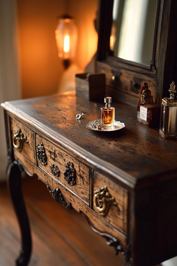 A vintage-inspired vanity with ornate hardware proves that classic charm can coexist with modern sensibilities. It’s a reflection of confidence in embracing timeless beauty. When you surround yourself with pieces that tell a story, your space becomes a source of daily inspiration.