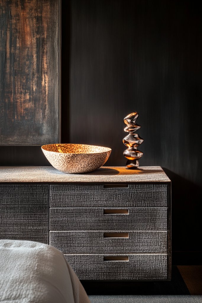 A monochrome setup with textured surfaces and metallic details exudes confidence and sophistication. It’s a timeless choice that elevates your space into a high-end retreat. When your environment feels both rich and harmonious, your everyday mood improves naturally.