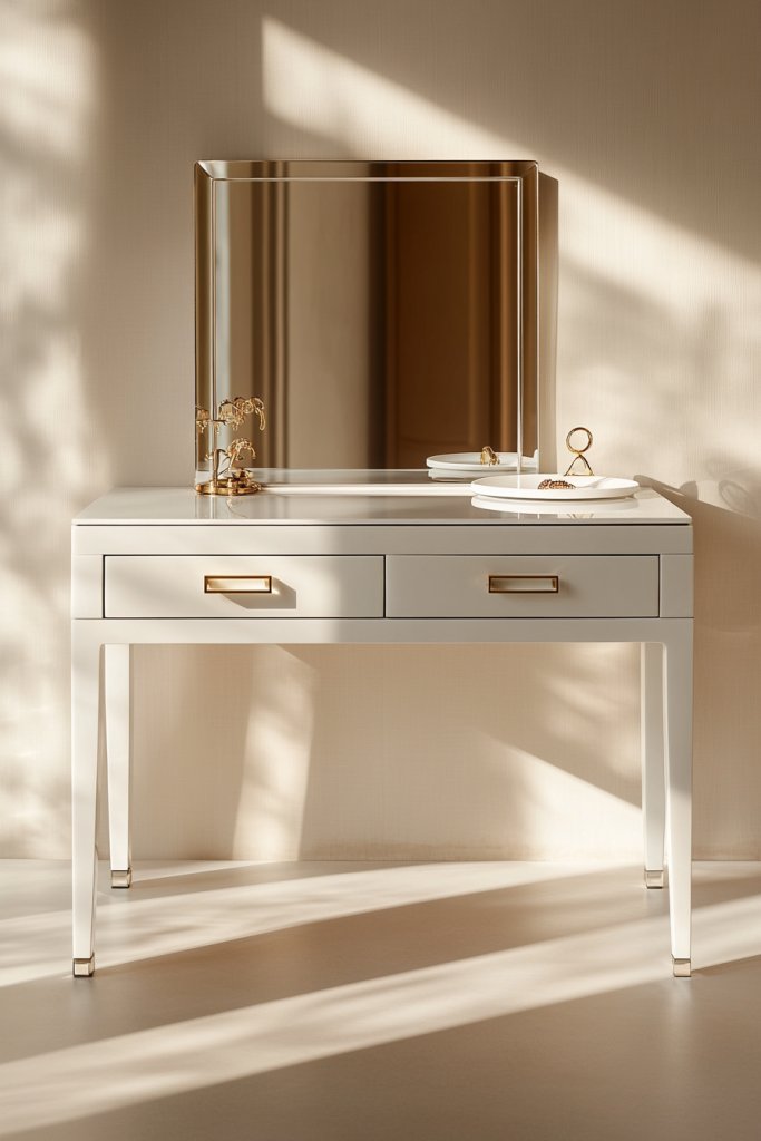 Looking for a dressing table that screams luxury without breaking the bank? A glossy white high-gloss finish paired with gold hardware hits that sweet spot of modern elegance and understated glamour. It’s perfect for those who want a bright, clean look with just a touch of opulence. Who says budget-friendly can’t feel luxe?