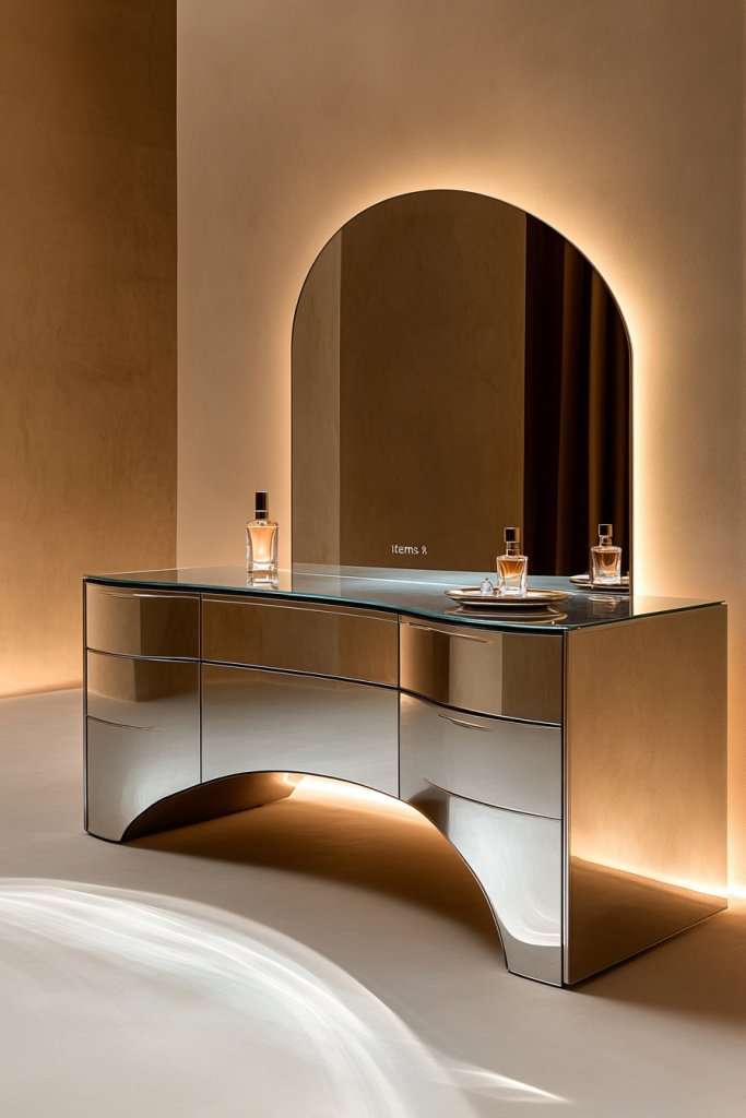 6. Curved Silhouette with Mirrored Drawers