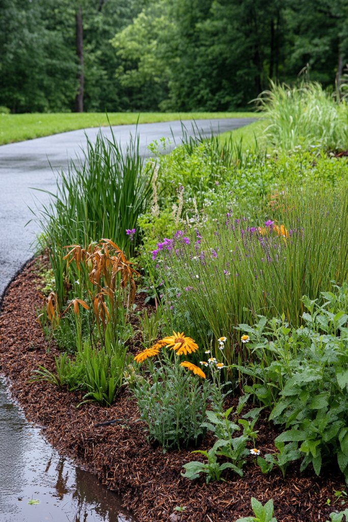 11. Eco-Friendly Rain Garden at the Driveway Edge