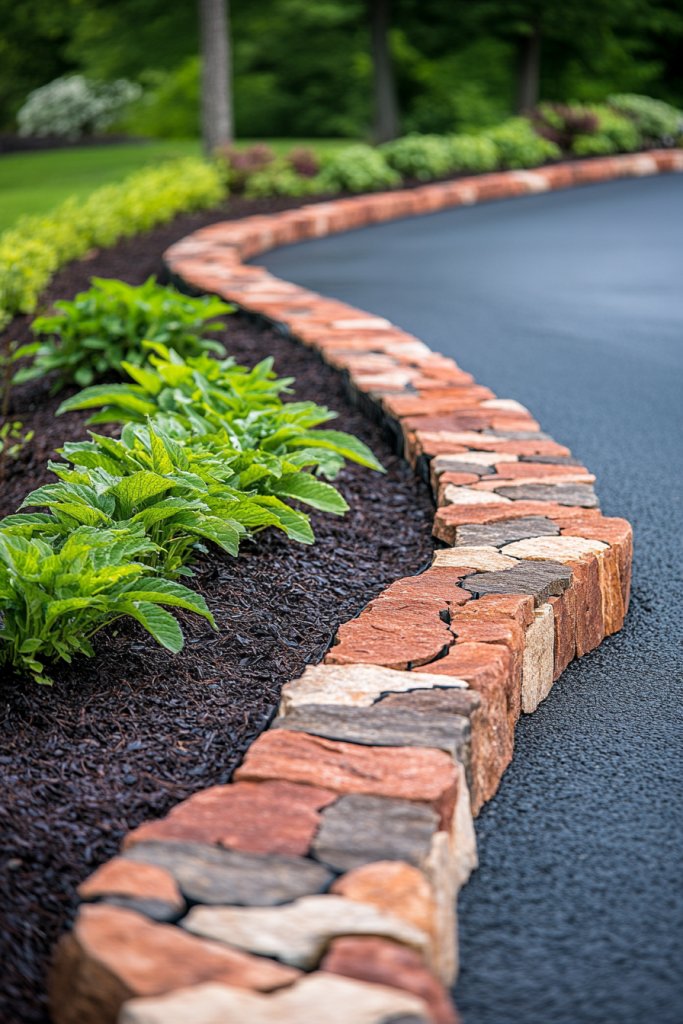2. Decorative Edging with Natural Stone or Brick