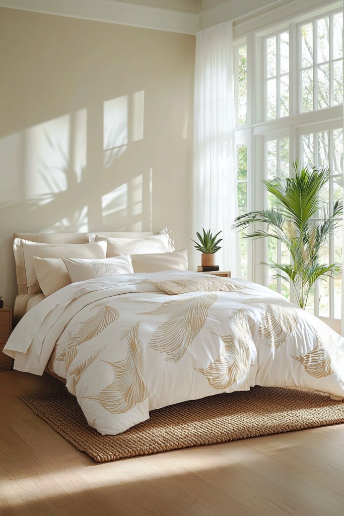 These colors can be used on walls, bedding, or decorative accents to establish a cohesive look. Consider painting your walls a calming sage green or a warm taupe to set a peaceful backdrop.