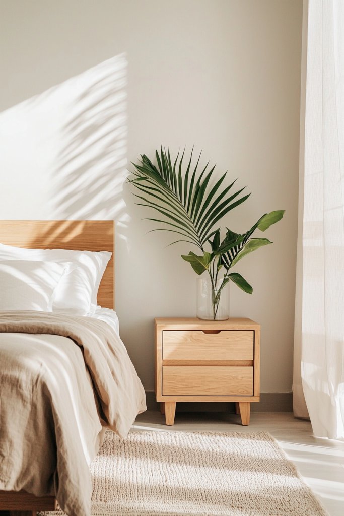 Consider small succulents on your nightstand or a larger fiddle leaf fig in the corner. These plants not only purify the air but also soften the hard edges of modern decor.