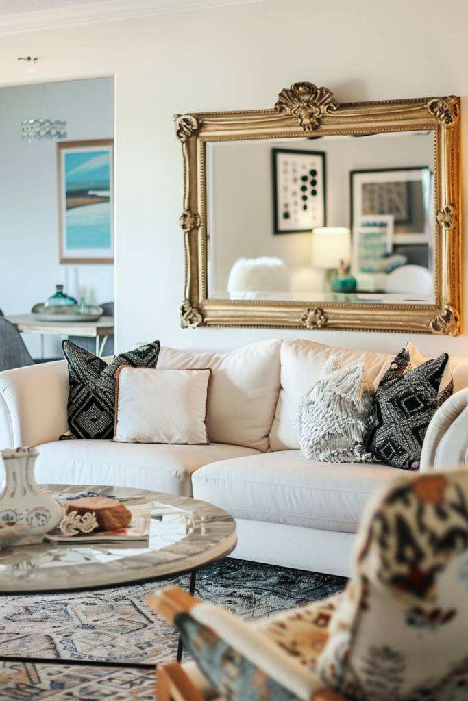 You might also experiment with smaller, decorative mirrors, arranging them in a gallery-style layout on your walls. This not only adds visual interest but also creates a dynamic interplay of reflections that draws the eye around the room.