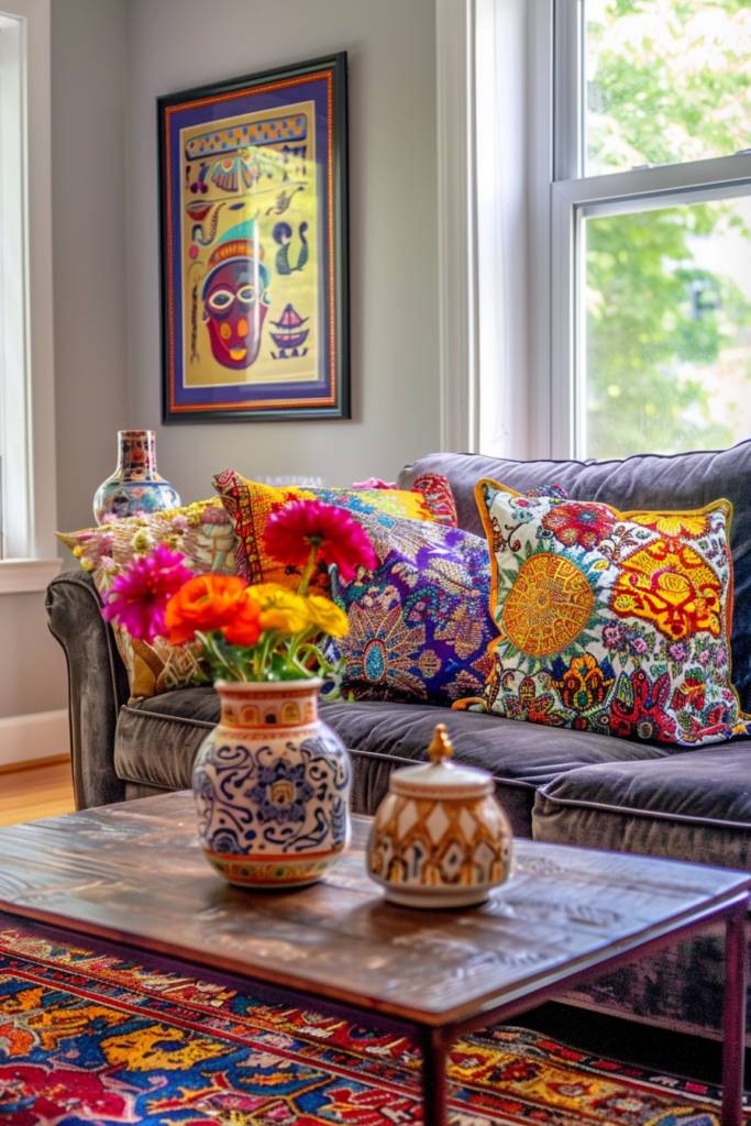 Start by selecting a focal point, like a large wall display or a coffee table arrangement, and balance it with complementary elements. Incorporate textiles, such as woven baskets or embroidered fabrics, to enhance the sensory experience. Don’t shy away from mixing different cultures; the goal is to celebrate diversity and create harmony.