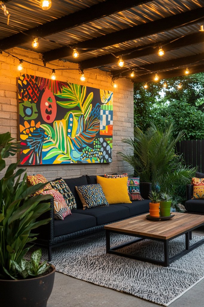 Layering textures is key; wicker chairs paired with wooden benches create a cozy yet dynamic atmosphere. Don’t shy away from quirky decor—vintage lanterns or a funky sculpture can serve as conversation starters.