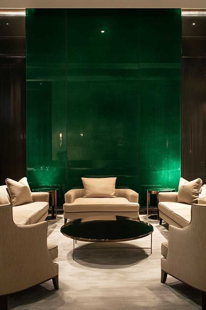 1. Deep Emerald Accent Wall for a Luxurious Living Room