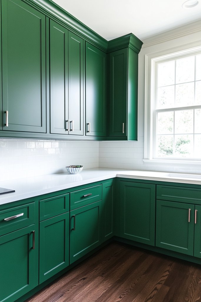 2. Matte Emerald Cabinets in a Modern Kitchen