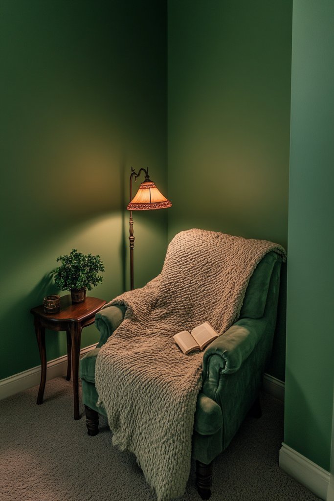 5. Soft Emerald Green in a Cozy Reading Nook