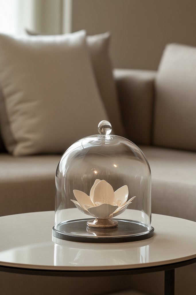 Choose a glass dome or cloche that fits your focal item and complements your style. Place it on a small stand, tray, or directly on a surface like a console table. Select a special item—perhaps an heirloom or a small sculpture—and position it centrally. Enhance the display with lighting—LED spotlights or candles nearby—without risking heat damage. Regularly clean both the glass and the item to keep the display looking pristine.