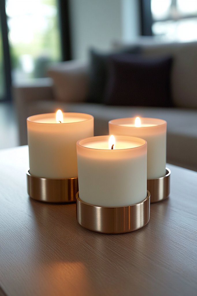 Pick a sturdy tray or a decorative base that matches your decor style. Arrange candles of different heights and shapes, ensuring they are stable and safe. Incorporate decorative elements like small stones, faux greenery, or textured cloths to frame the candles if desired. Use flameless candles if safety or maintenance concerns exist. Light the candles during evenings or special occasions to maximize impact, and never leave them unattended.
