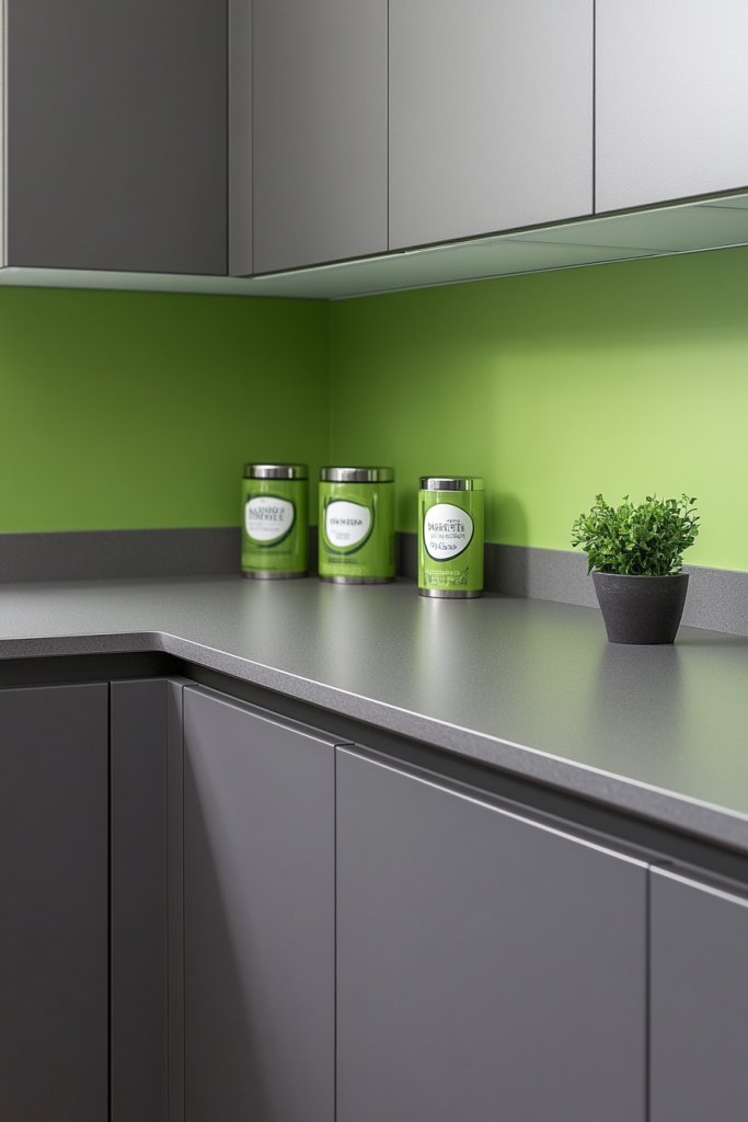 3. Minimalist Kitchen with Cool Gray and Sage Accents