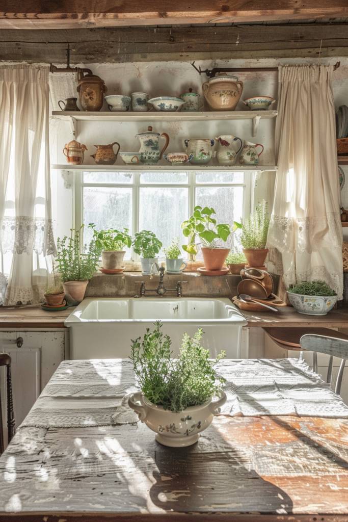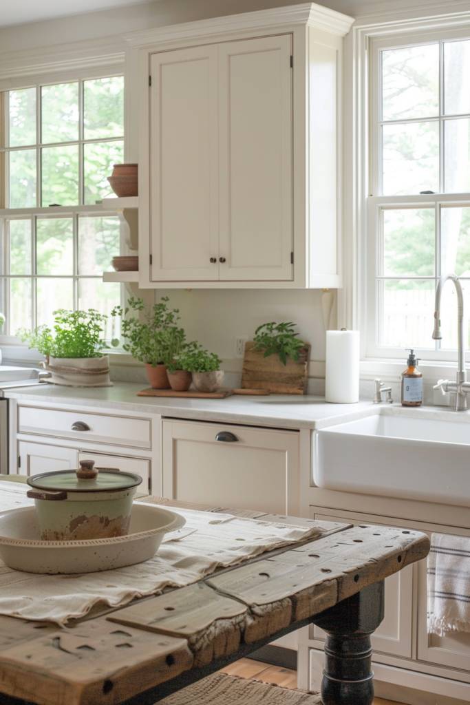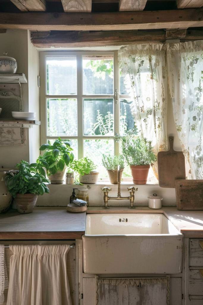 Adding a touch of greenery to your farmhouse kitchen can enhance its rustic charm, and there’s no better way to do this than with an herb garden on your windowsill. Imagine the fresh scent of basil, rosemary, and thyme wafting through your space, giving it a lively, inviting atmosphere. Choosing small pots or a tiered planter can create a visually appealing display that’s easy to maintain.