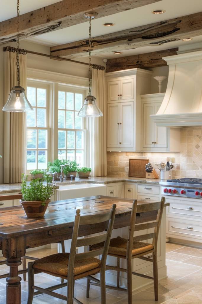You might choose exposed beams for a more traditional look or opt for a whitewashed finish for a modern twist. Either way, they invite a touch of nature indoors, connecting your kitchen to the surrounding landscape. Pairing these beams with pendant lighting or vintage fixtures can further accentuate their beauty, creating a welcoming atmosphere perfect for gatherings.
